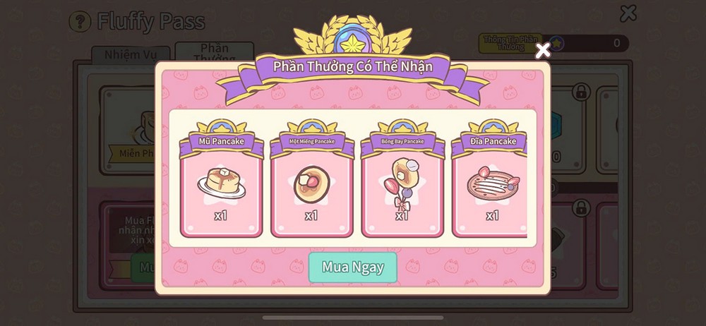 Tham gia Fluffy Pass, người chơi có cơ hội sở hữu trọn bộ trang phục Pancake độc quyền, cùng nhiều phần thưởng quen thuộc nhưng thiết thực như Đá quý và Nguyên liệu sản xuất. Những phần quà này hỗ trợ hiệu quả cho quá trình mở rộng, phát triển và trang trí thị trấn, phù hợp với cả người chơi mới lẫn game thủ lâu năm.